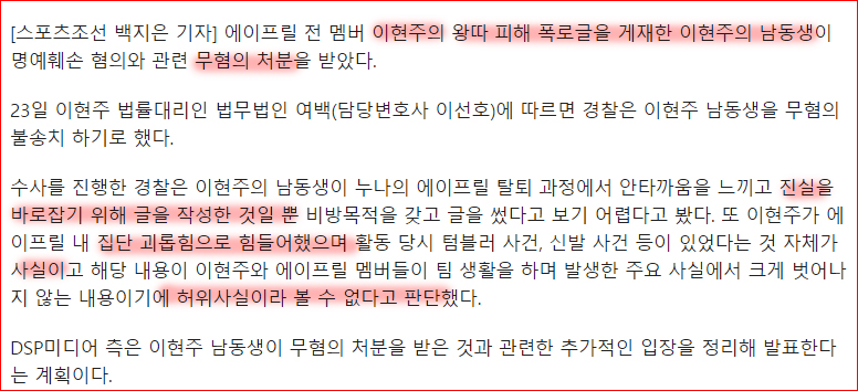 무혐의 처분을 받았다"라고 나와잇는점!!!